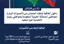 بدء الإعفاء من التأشيرة بين السعودية وروسيا 11 مايو 2026.. دخول بدون فيزا لمدة 90 يومًا