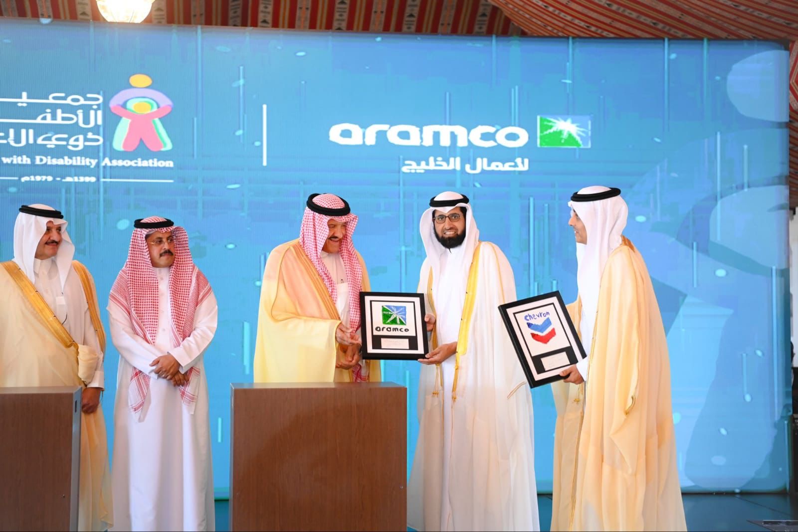 وألقى الرئيس وكبير الإداريين التنفيذيين بالإنابة لشركة أرامكو لأعمال الخليج المهندس فيصل الذواد كلمةً رفع فيها شكره لصاحب السمو الملكي الأمير سعود بن نايف بن عبدالعزيز، أمير المنطقة الشرقية، على رعايته الكريمة للحفل، ولصاحب السمو الملكي الأمير سلطان بن سلمان بن عبدالعزيز، رئيس مجلس إدارة جمعية الأطفال ذوي الإعاقة، على جهوده المباركة في خدمة هذه الفئة الغالية، مؤكدًا أن تدشين المركز في محافظة الخفجي يجسد عمق الشراكة المجتمعية بين شركة أرامكو لأعمال الخليج وشركة شيفرون العربية السعودية والجمعية، ويعكس اهتمام القيادة الرشيدة -حفظها الله- بتمكين القطاع غير الربحي وتعزيز جودة الحياة، وثمّن تعاون الجهات الحكومية ومحافظة الخفجي على دعمهم المستمر لإنجاح هذه المبادرة، مؤكدًا التزام الشركة بمواصلة دورها في خدمة المجتمع وتعزيز التنمية المستدامة في المنطقة.