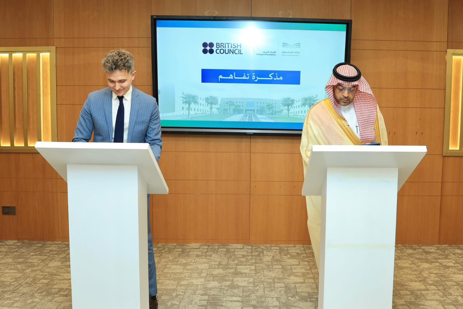 ومثّل شركة كليات التميّز الرئيس التنفيذي المهندس أيمن آل عبدالله، فيما مثّل المجلس الثقافي البريطاني مدير المجلس السيد ماثيو نولز.