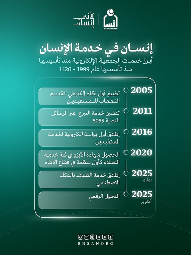 في خطوة نوعية، دشّنت الجمعية الخيرية لرعاية الأيتام “إنسان” برنامج التحول الرقمي، ضمن جهودها لمواكبة التطورات التقنية وتعزيز جودة الخدمات المقدمة لأكثر من 40 ألف يتيم ويتيمة وأم يتيم.