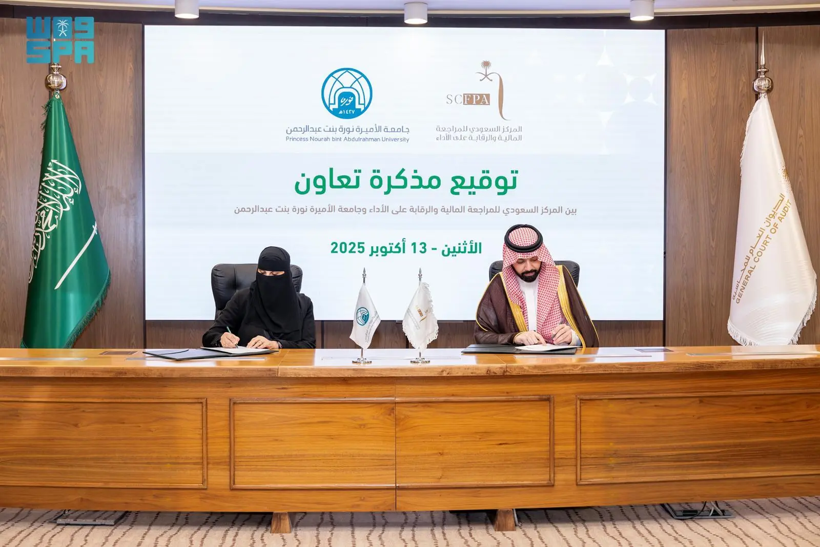 المركز السعودي للمراجعة المالية والرقابة على الأداء وجامعة الأميرة نورة بنت عبدالرحمن يوقّعان مذكرة تعاون