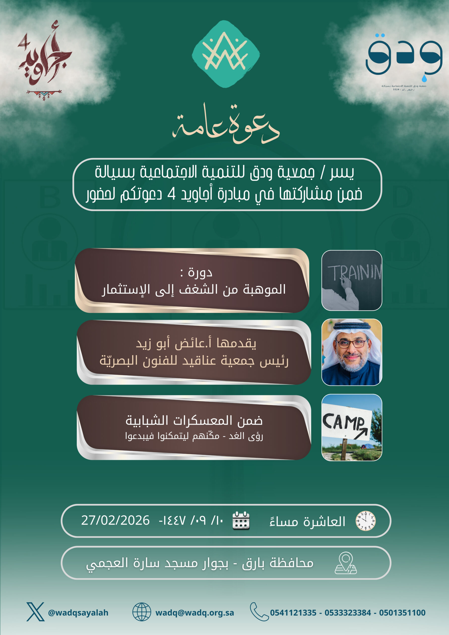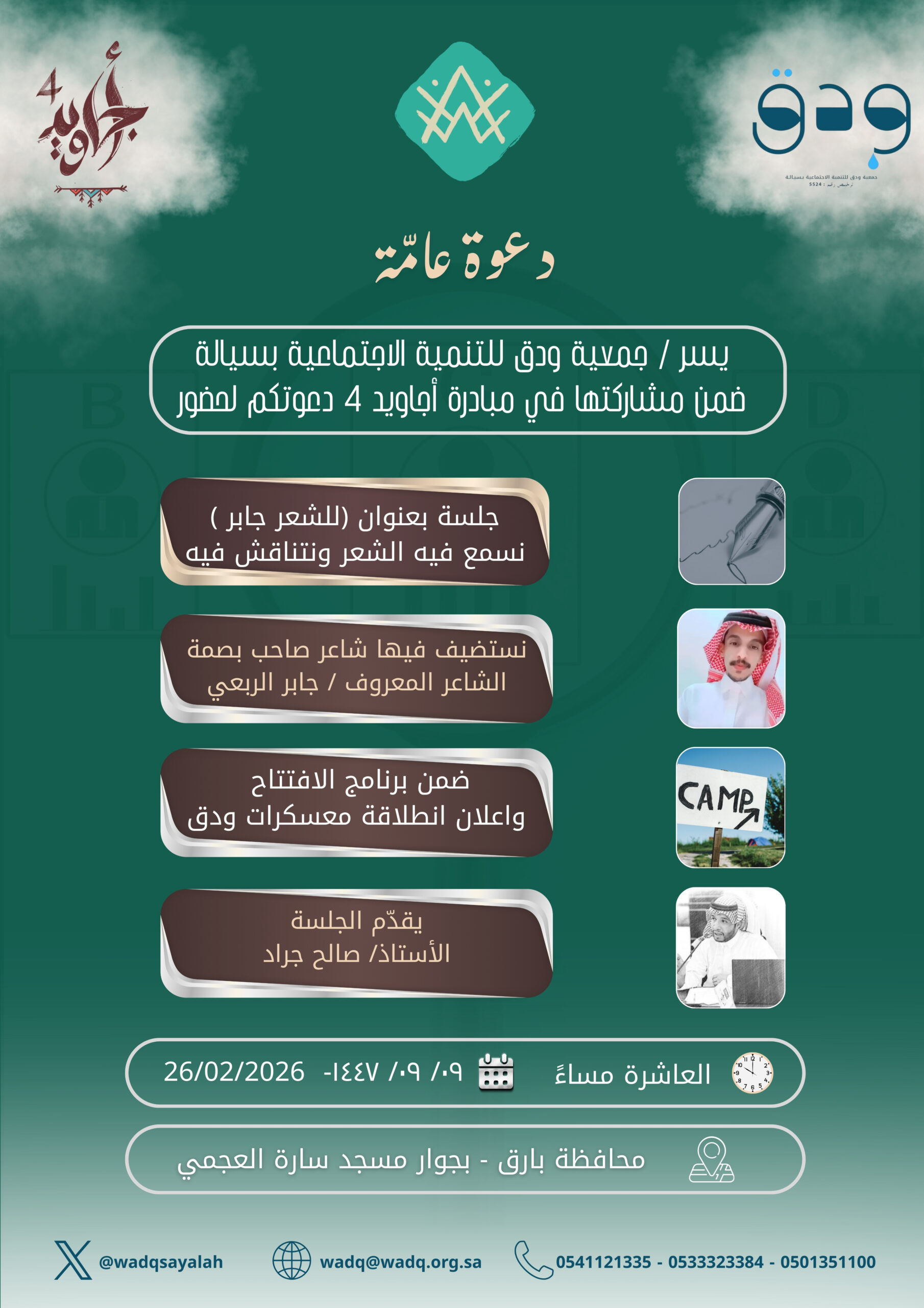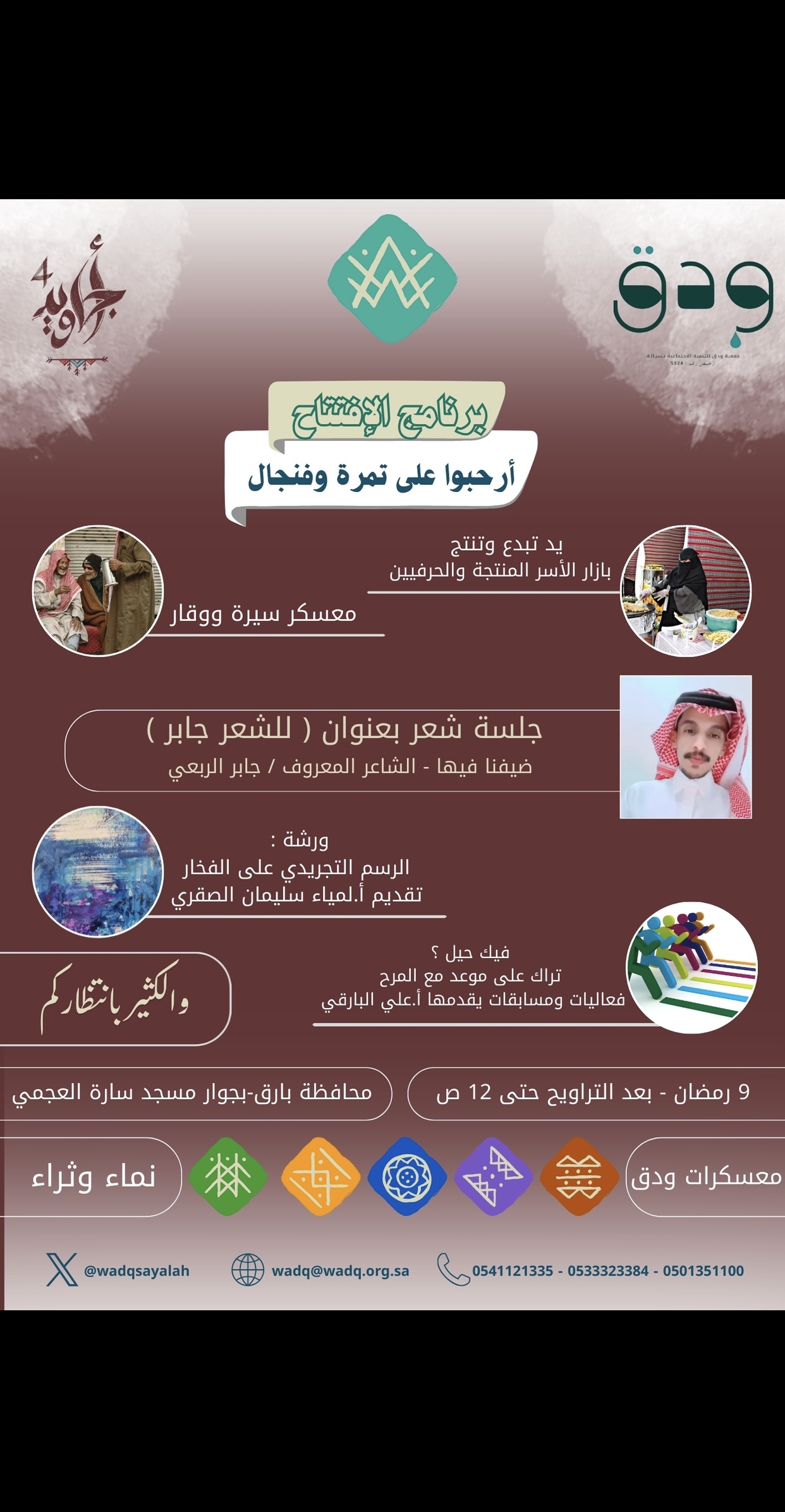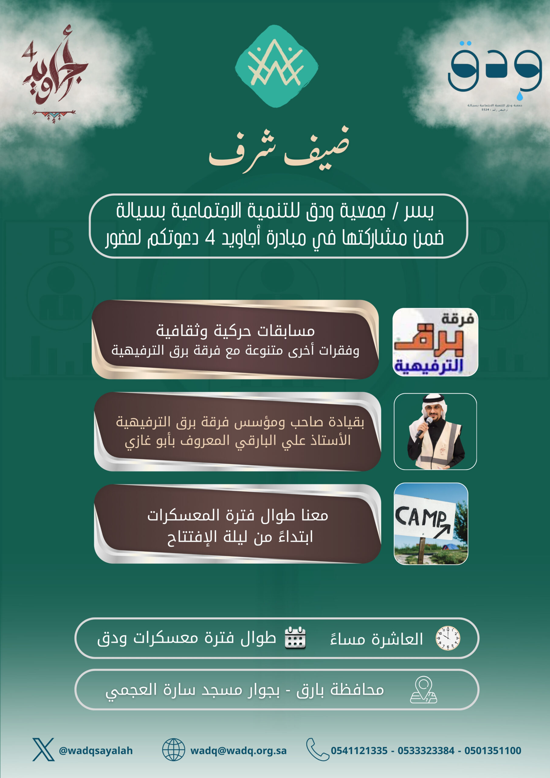 وأكدت الجمعية أن مشروع “معسكرات ودق ” يأتي انطلاقًا من رسالتها في صناعة أثرٍ مستدام، وتهيئة المجتمع لاستثمار الشهر الفضيل بروحٍ واعية، تعزز القيم، وتبني إنسانًا أكثر اتزانًا وعطاءً ،بما ينسجم مع دورها التنموي في خدمة المجتمع.