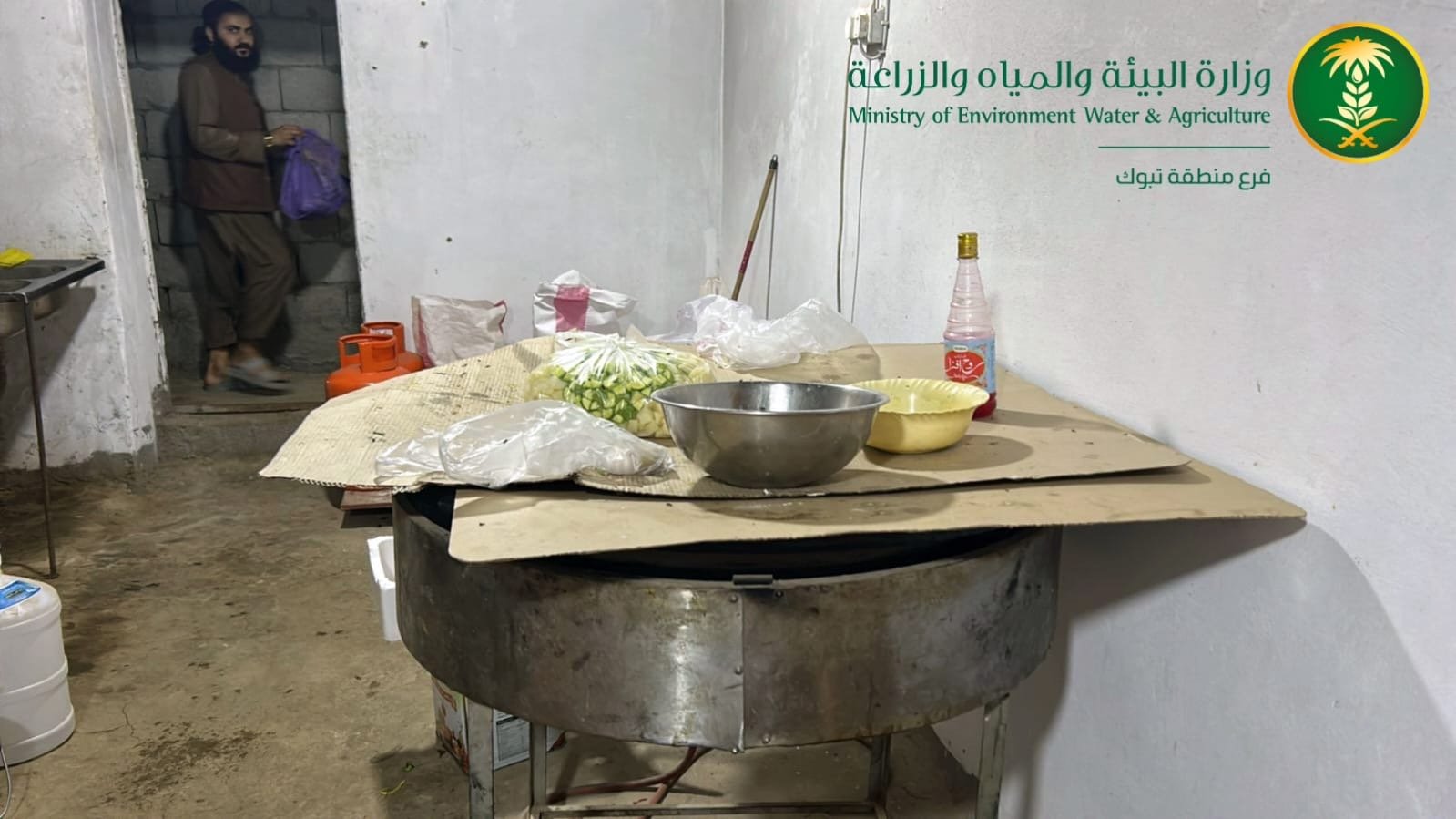 ضبط فرع وزارة البيئة والمياه والزراعة بمنطقة تبوك، اليوم، موقعاً مخالفاً داخل سوق المواشي والأعلاف، استُخدم بصورة غير نظامية لإعداد وتجهيز الأطعمة وبيعها في بيئة تفتقر للاشتراطات الصحية والتنظيمية المعتمدة.