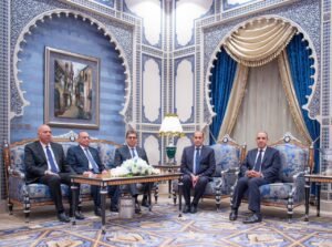 فيما حضر من الجانب المصري معالي وزير الخارجية والتعاون الدولي والمصريين بالخارج الدكتور بدر عبدالعاطي، ورئيس ديوان رئيس الجمهورية اللواء أحمد علي، ورئيس المخابرات العامة اللواء حسن رشاد، ومدير مكتب رئيس الجمهورية السيد عمر مروان، وسفير مصر لدى المملكة إيهاب أبوسريع، والمتحدث الرسمي باسم رئاسة الجمهورية السفير محمد الشناوي.