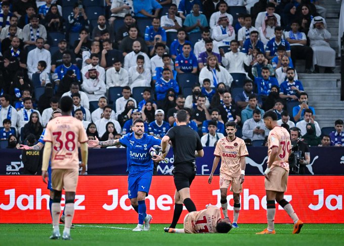وكان قائد الهلال سالم الدوسري قد أهدر فرصة هدف محقق لفريقه قبل أن يعوض الحربي ذلك بهدف التقدم.