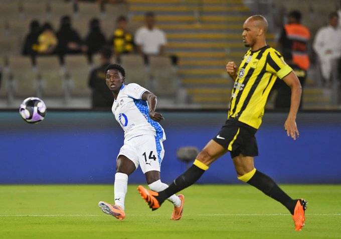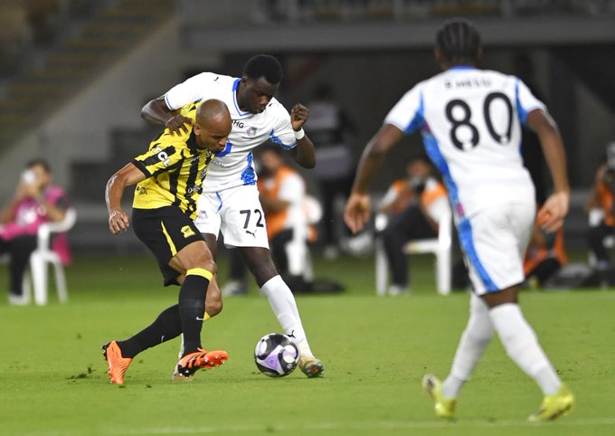 وسجّل رودريغز هدفي التقدّم لنيوم في الدقيقتين 3 و16، قبل أن ينجح يوسف النصيري في إعادة الاتحاد إلى اللقاء بتوقيعه هدفين متتاليين في الدقيقتين 36 و44 لينتهي الشوط الأول بالتعادل 2-2.