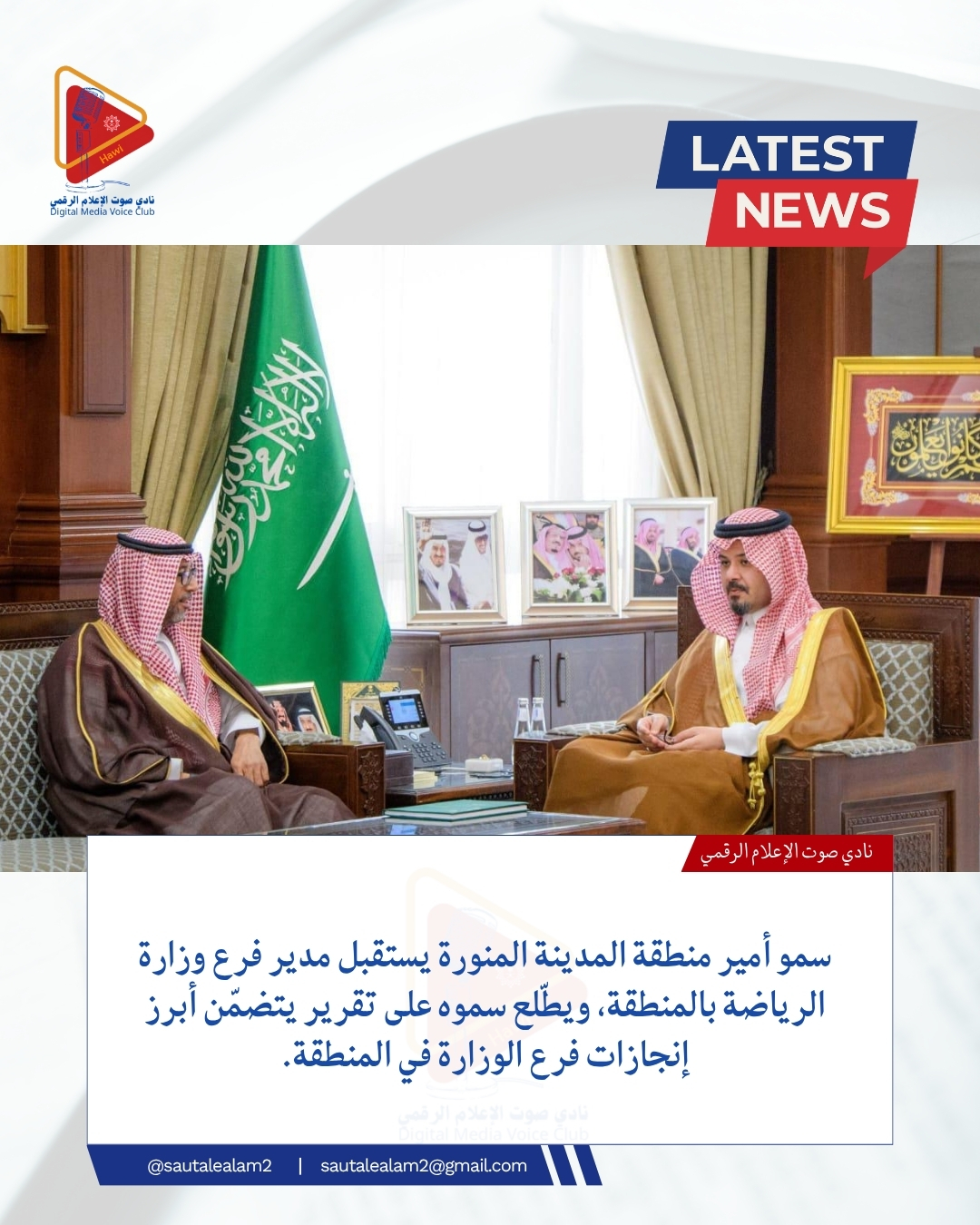 سمو أمير منطقة المدينة المنورة يستقبل مدير فرع وزارة الرياضة بالمنطقة، ويطّلع سموه على تقرير يتضمّن أبرز إنجازات فرع الوزارة في المنطقة.