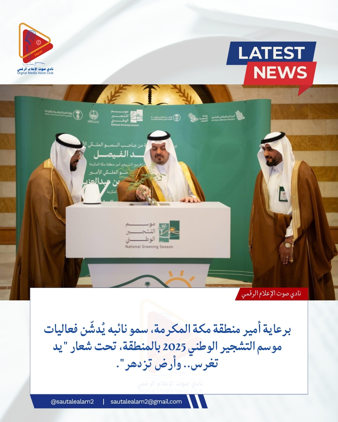 برعاية أمير منطقة مكة المكرمة، سمو نائبه يُدشّن فعاليات موسم التشجير الوطني 2025 بالمنطقة، تحت شعار “يد تغرس.. وأرض تزدهر”.
