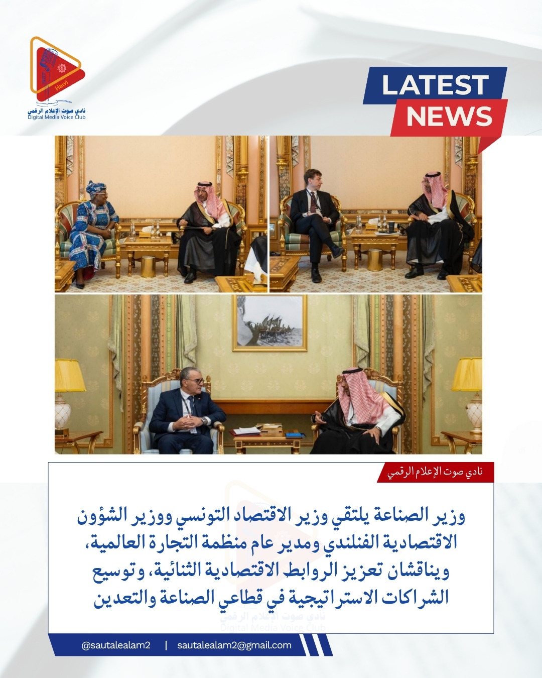 وزير الصناعة يلتقي وزير الاقتصاد التونسي ووزير الشؤون الاقتصادية الفنلندي ومدير عام منظمة التجارة العالمية، ويناقشان تعزيز الروابط الاقتصادية الثنائية، وتوسيع الشراكات الاستراتيجية في قطاعي الصناعة والتعدين