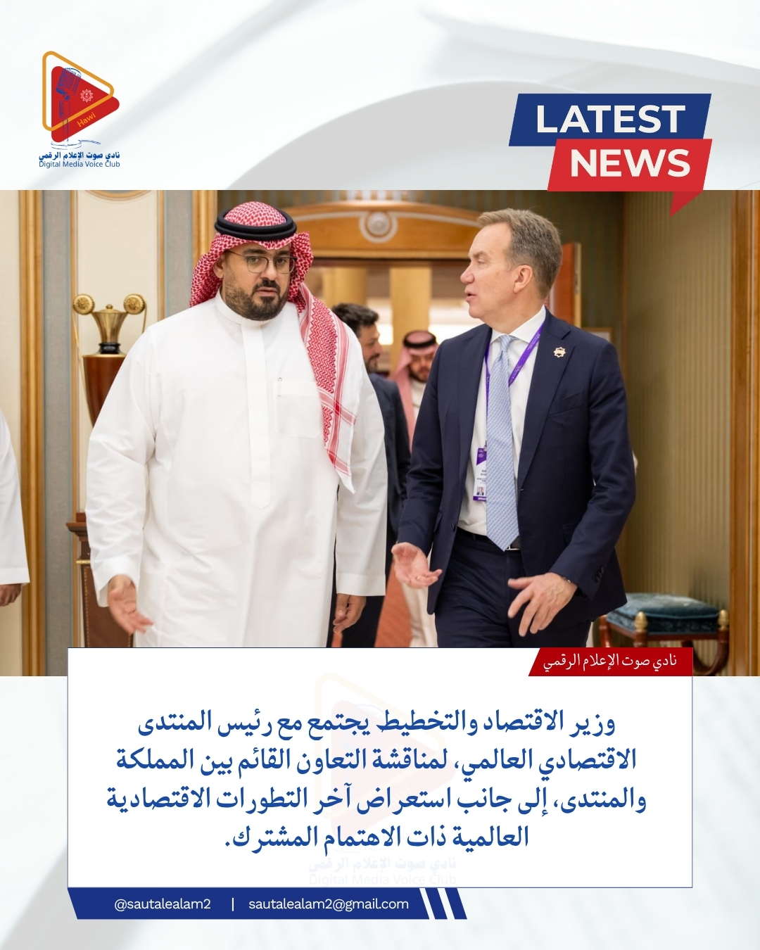 وزير الاقتصاد والتخطيط يجتمع مع رئيس المنتدى الاقتصادي العالمي، لمناقشة التعاون القائم بين المملكة والمنتدى، إلى جانب استعراض آخر التطورات الاقتصادية العالمية ذات الاهتمام المشترك.