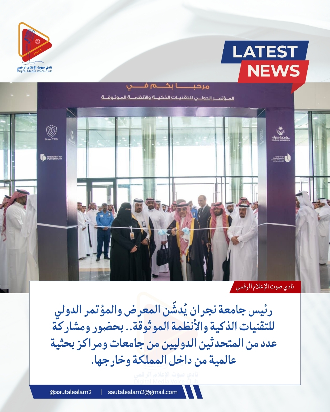 رئيس جامعة نجران يُدشّن المعرض والمؤتمر الدولي للتقنيات الذكية والأنظمة الموثوقة.. بحضور ومشاركة عدد من المتحدثين الدوليين من جامعات ومراكز بحثية عالمية من داخل المملكة وخارجها.