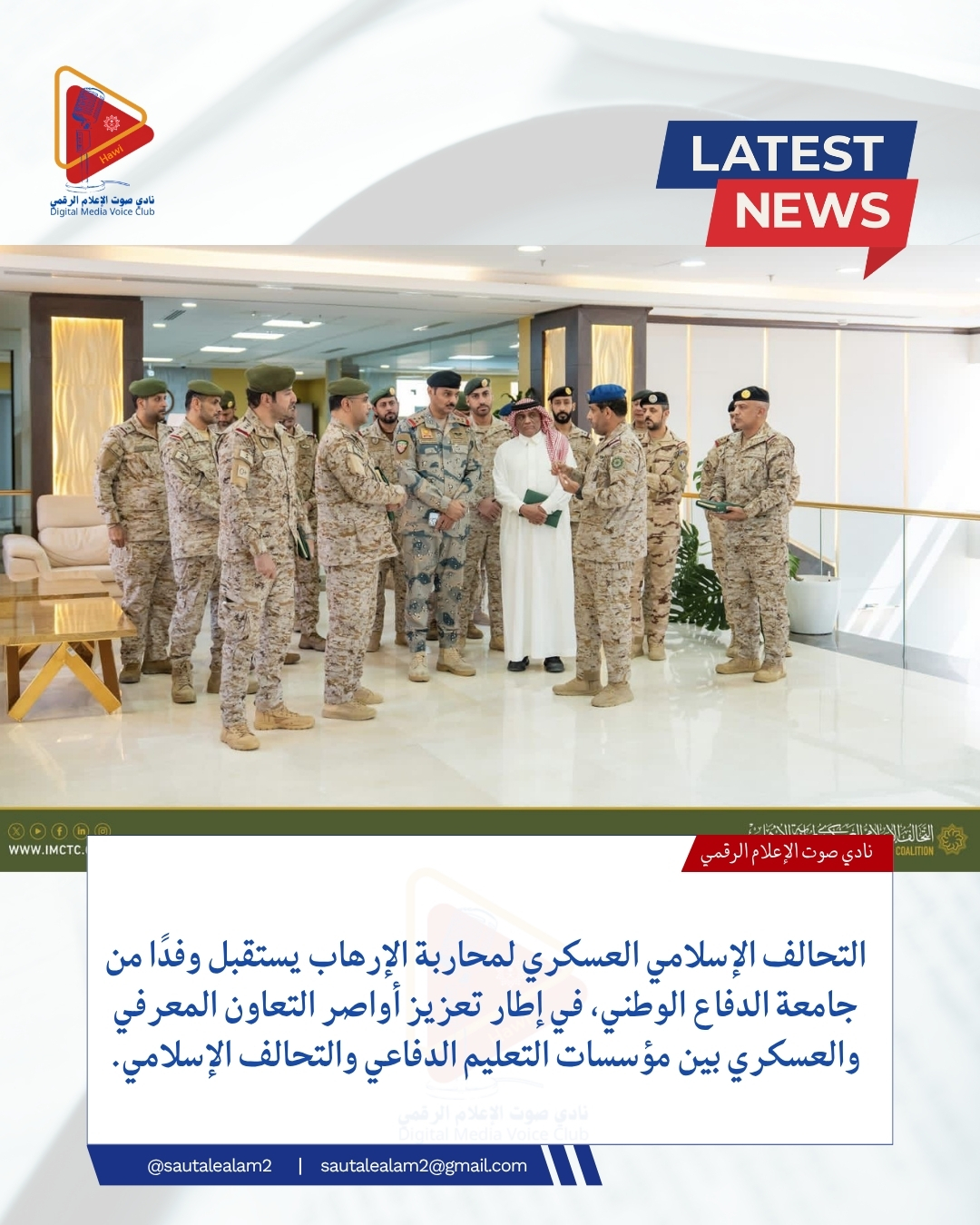 التحالف الإسلامي العسكري لمحاربة الإرهاب يستقبل وفدًا من جامعة الدفاع الوطني، في إطار تعزيز أواصر التعاون المعرفي والعسكري بين مؤسسات التعليم الدفاعي والتحالف الإسلامي.