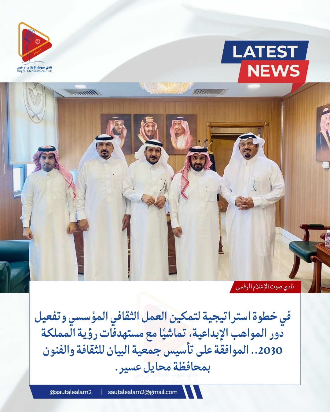 في خطوة استراتيجية لتمكين العمل الثقافي المؤسسي وتفعيل دور المواهب الإبداعية، تماشيًا مع مستهدفات رؤية المملكة 2030.. الموافقة على تأسيس جمعية البيان للثقافة والفنون بمحافظة محايل عسير.