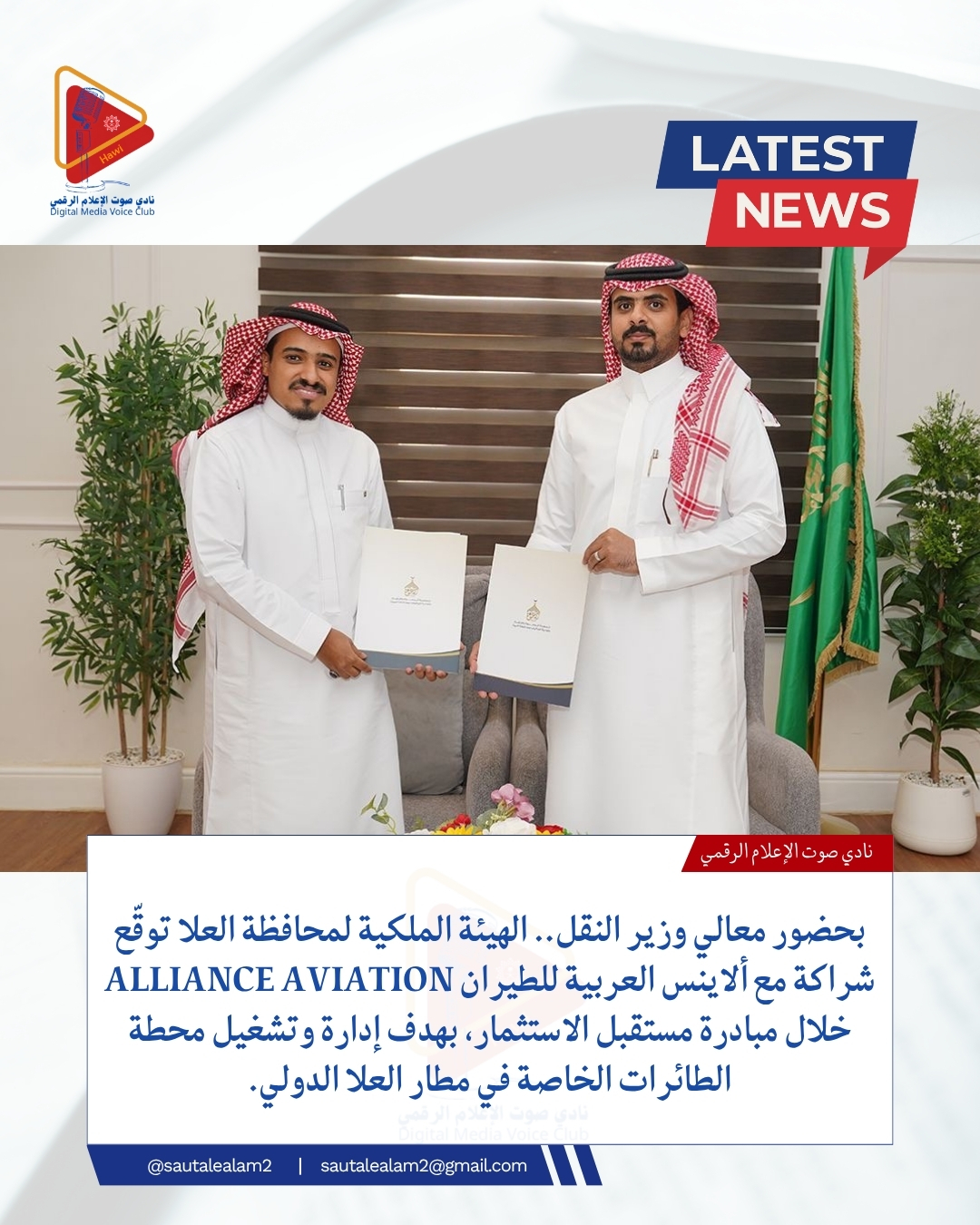بحضور معالي وزير النقل.. الهيئة الملكية لمحافظة العلا توقّع شراكة مع ألاينس العربية للطيران Alliance Aviation خلال مبادرة مستقبل الاستثمار، بهدف إدارة وتشغيل محطة الطائرات الخاصة في مطار العلا الدولي.