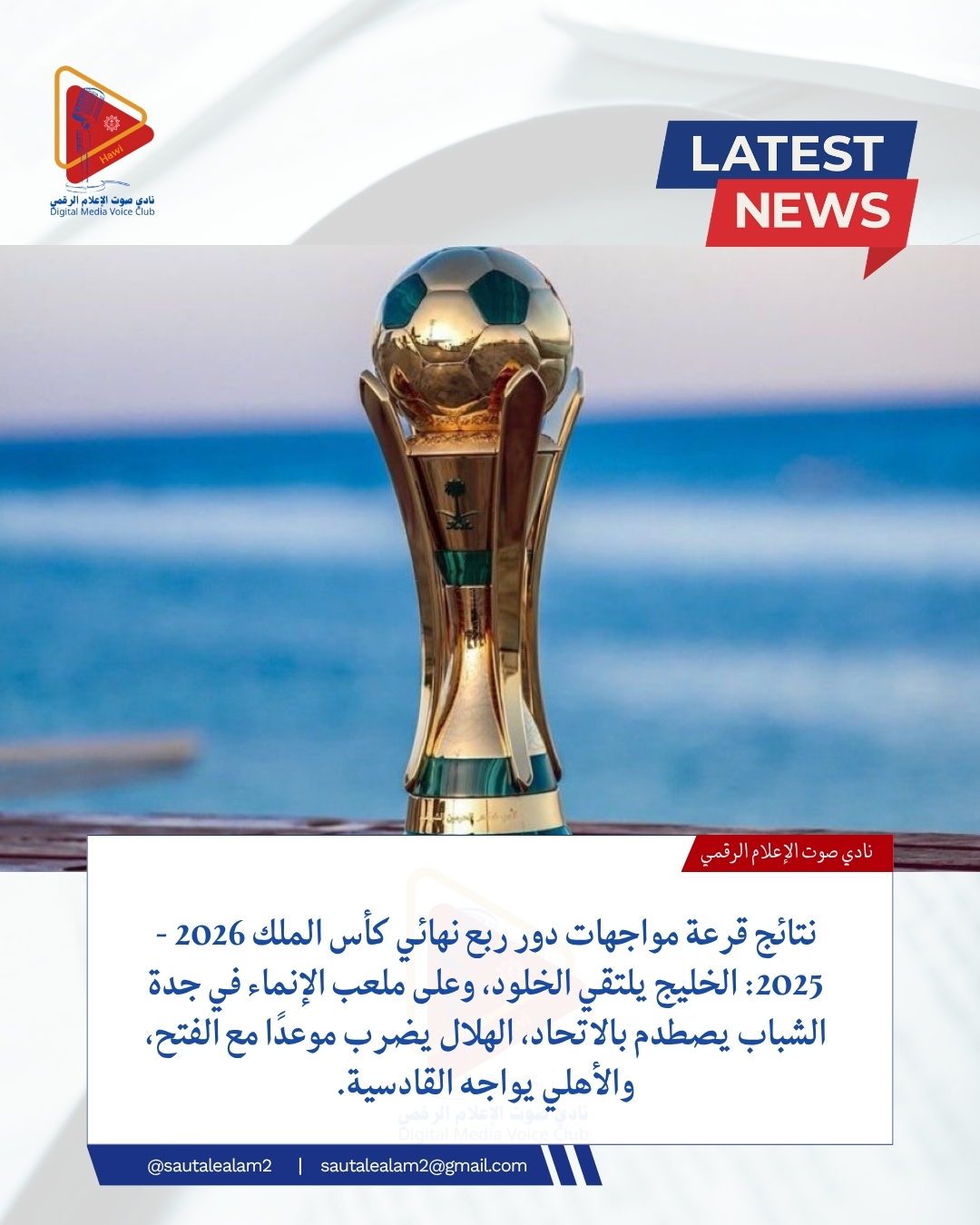 نتائج قرعة مواجهات دور ربع نهائي كأس الملك 2026 – 2025: الخليج يلتقي الخلود، وعلى ملعب الإنماء في جدة الشباب يصطدم بالاتحاد، الهلال يضرب موعدًا مع الفتح، والأهلي يواجه القادسية.