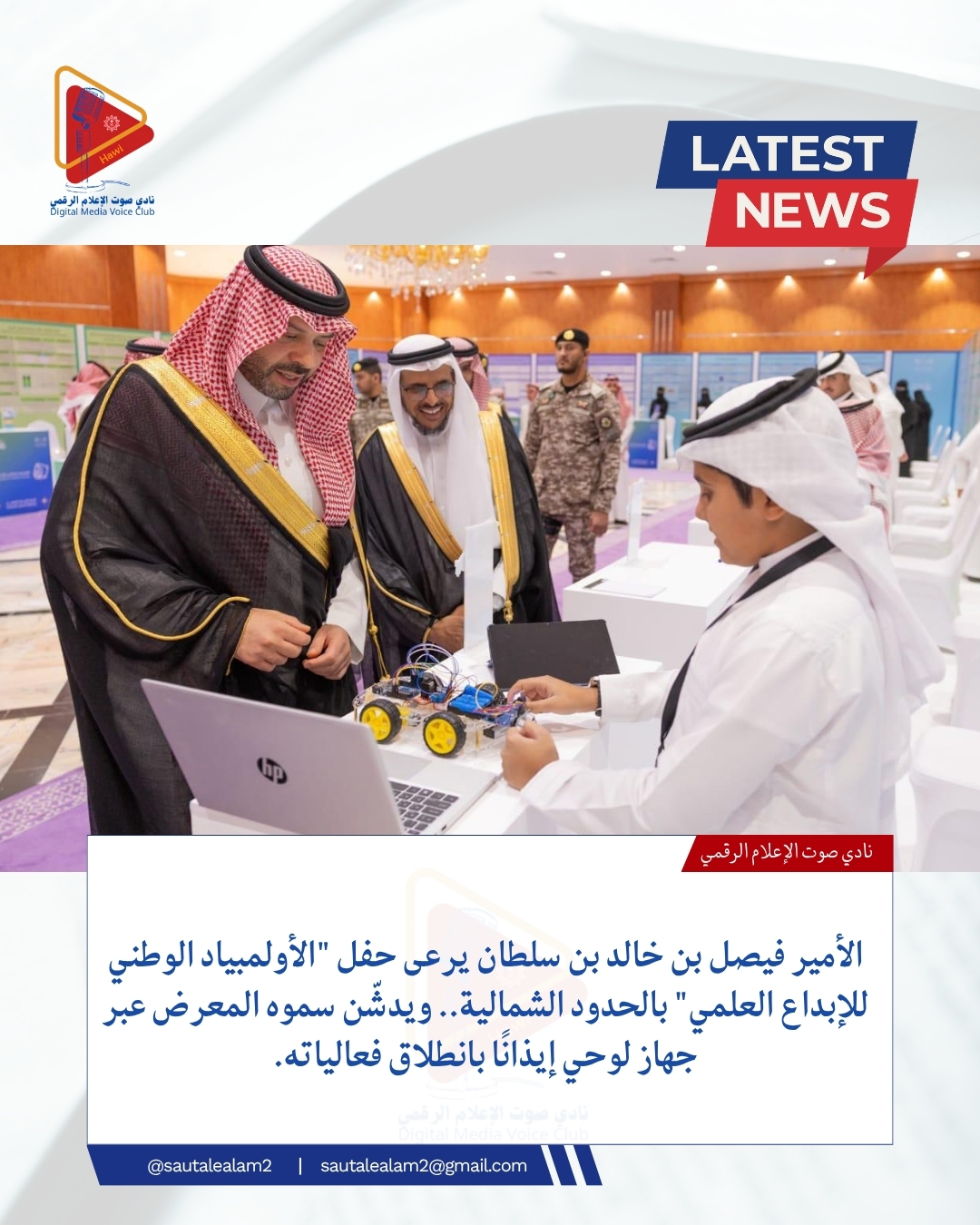 الأمير فيصل بن خالد بن سلطان يرعى حفل “الأولمبياد الوطني للإبداع العلمي” بالحدود الشمالية.. ويدشّن سموه المعرض عبر جهاز لوحي إيذانًا بانطلاق فعالياته.