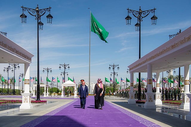 وأقام سمو ولي العهد مراسم استقبال رسمية لجلالته.