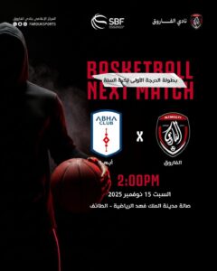 وسيواجه نادي الفاروق نادي أبها الساعة 2 ظهرا ، بصالة مدينة الملك فهد الرياضية بالطائف .