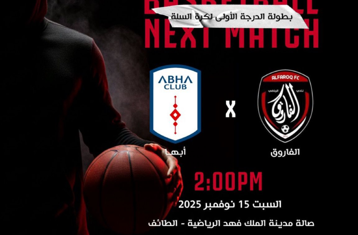 وسيواجه نادي الفاروق نادي العدالة الساعة 2 ظهرا ، بصالة مدينة الملك فهد الرياضية بالطائف .