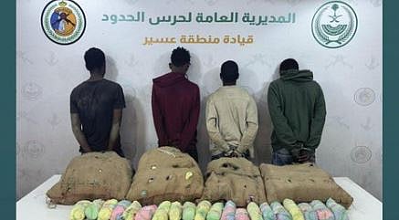 كما ألقت الدوريات البرية لحرس الحدود في قطاع الربوعة بمنطقة عسير القبض على 4 مخالفين لنظام أمن الحدود من الجنسية الإثيوبية، لتهريبهم 60 كيلوجراما من نبات القات المخدر؛ وجرى استكمال الإجراءات النظامية الأولية بحقهم، وتسليمهم والمضبوطات لجهة الاختصاص.