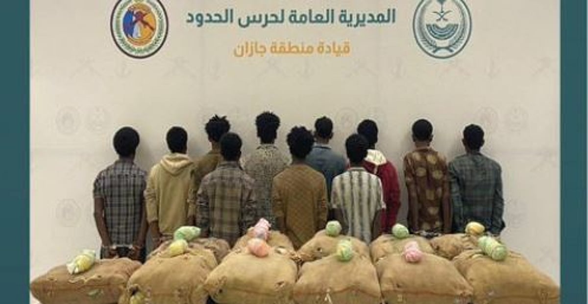 ألقت الدوريات البرية لحرس الحدود في قطاع الدائر بمنطقة جازان القبض على 11 مخالفا لنظام أمن الحدود من الجنسية الإثيوبية، لتهريبهم 220 كيلوجراما من نبات القات المخدر. وتم استكمال الإجراءات النظامية الأولية بحقهم، وتسليمهم والمضبوطات لجهة الاختصاص.