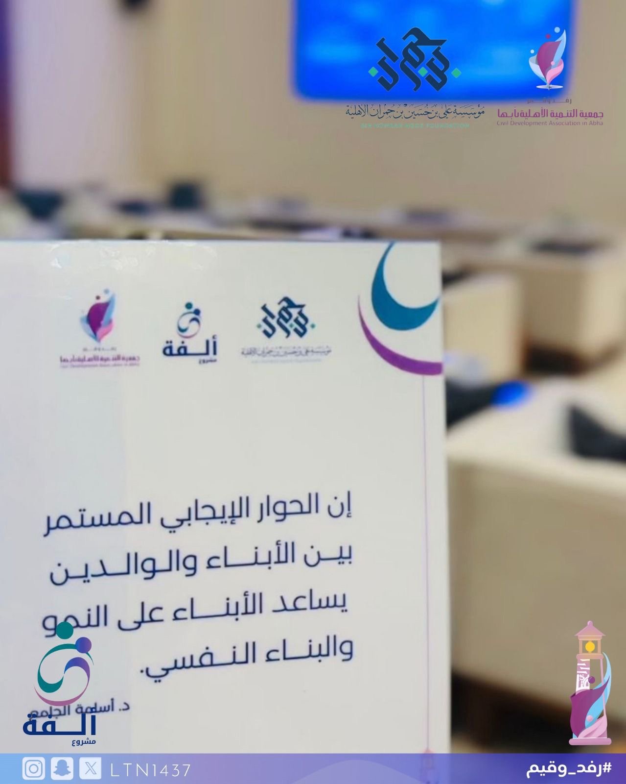وفي ختام المشروع، تتقدم جمعية التنمية الأهلية بأبها بخالص الشكر والتقدير لمؤسسة علي بن حسين بن حمران الأهلية على ثقتهافي في تنفيذ مشروع “أُلفة” الاستباقي، مؤكدة أن هذه الشراكة تمثل نموذجًا فاعلًا في تمكين المبادرات الأسرية النوعية، واستمرار صناعة أثر تنموي مستدام يخدم الأسرة والمجتمع.