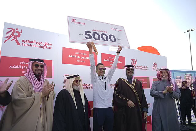 نُظّم أمس سباق «جري السعيرة» على جائزة الدكتور سلطان بن بدر الفغم – رحمه الله – لمسافة 5 كيلومترات، وذلك في مركز السعيرة بمحافظة حفر الباطن، بمشاركة أكثر عدد كبير من عدّائي من مختلف مناطق المملكة، إلى جانب مشاركة عدد من المقيمين من جنسيات عربية ودولية، بالتعاون مع فرع وزارة الرياضة بالمحافظة.