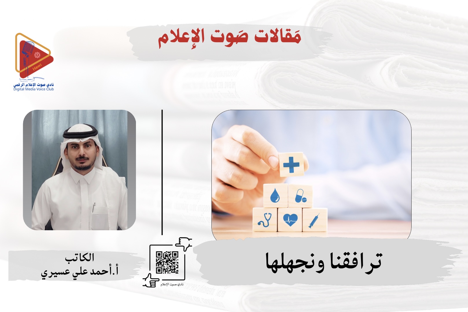 فحين نفقد العافية أو نقف بين الجدران البيضاء في المستشفى مرافقين لعزيزٍ أنهكه المرض تتغير نظرتنا لكل شيء ، هناك بين أنين الألم ورائحة الدواء ووجوهٍ أثقلها التعب نقف صامتين نراجع حساباتنا ونتأمل كم كنا غافلين عن نعمٍ عظيمة كانت تملأ حياتنا