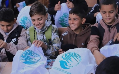 مركز الملك سلمان للإغاثة يوزع الملابس الشتوية على طلاب شمال غزة
