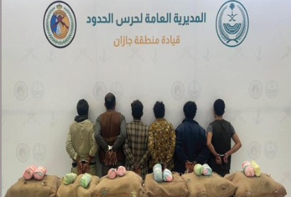 تمكنت الدوريات البرية لحرس الحدود في قطاع الدائر بمنطقة جازان من القبض على (6) مخالفين لنظام أمن الحدود من الجنسية اليمنية، لتهريبهم (108) كيلوجرامات من نبات القات المخدر.