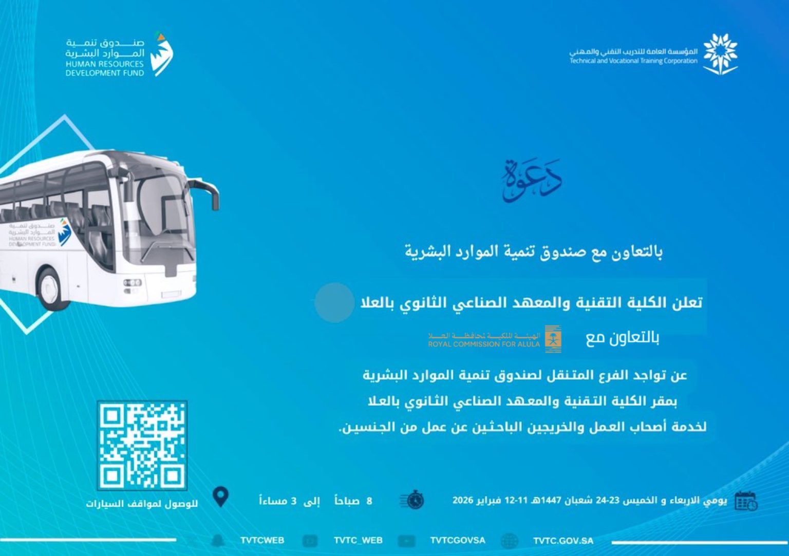 ويهدف اللقاء، إلى التعريف بالمبادرات التدريبية وبرامج الدعم والتأهيل وآليات الاستفادة منها؛ بما يعزز جاهزية الباحثين والباحثات عن عمل من أبناء وبنات العُلا، ويمكّنهم من الدخول إلى سوق العمل بكفاءة واقتدار.