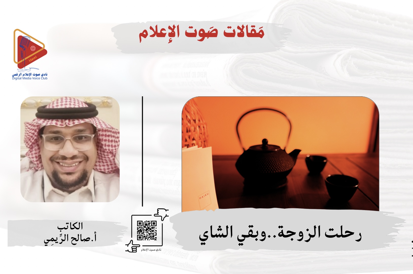 أنا من محبّي الشاي، ولا أحب الشاي لمجرد شراب، بل أحب الشاي كحالة هدوء وروقان تسبق الرشفة، وأحب الدفء الذي يأتي من داخل الكوب، أحب الشاي لأنه يمنح نفسي استراحة، ويصنع من اللحظةٍ العادية لحظة جميلة، فالشاي عندي ليس عادة، إنه رفيق يأتي حين يرحل الجميع، ويبقى دون أن يطلب شيئًا ..