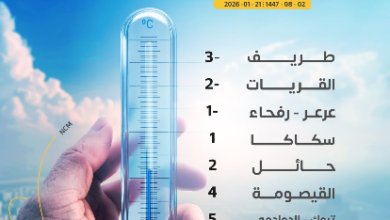 سجّل المركز الوطني للأرصاد (NCM) اليوم الأربعاء 21 يناير 2026م الموافق 2 شعبان 1447هـ موجة انخفاض حاد في درجات الحرارة،…