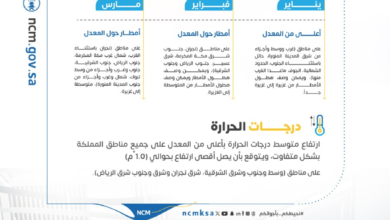 أصدر المركز الوطني للأرصاد تقريره عن التوقعات المناخية للربع الأول من عام 2026م (يناير – فبراير – مارس)، متضمنًا توقعات…