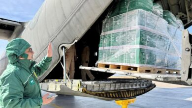 الطائرة الإغاثية السعودية الـ 76 لإغاثة الشعب الفلسطيني تصل مطار العريش
