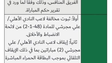 أوقفت لجنة الانضباط والأخلاق في الاتحاد السعودي لكرة القدم لاعب النادي الأهلي علي مجرشي مباراتين وغرمته 20 ألف ريال لقيامه…