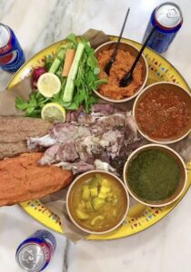 في تهامة عسير، يصبح الشتاء أكثر دفئًا مع تجربة «صحن السعادة» الذي يقدمه أصحاب المنادي المحليون. هذا الصحن ليس مجرد وجبة، بل تحفة من المذاق والضيافة، يجمع بين الحنيذ المطهو ببطء في حفرة تقليدية، والإيدامات المتنوعة، والحلبة، والرز، والخبز المحلي مثل الخمير وقرصان الدقيق، ليقدّم للزائر تجربة غذائية متكاملة تعكس التراث العسيري وروح الكرم.